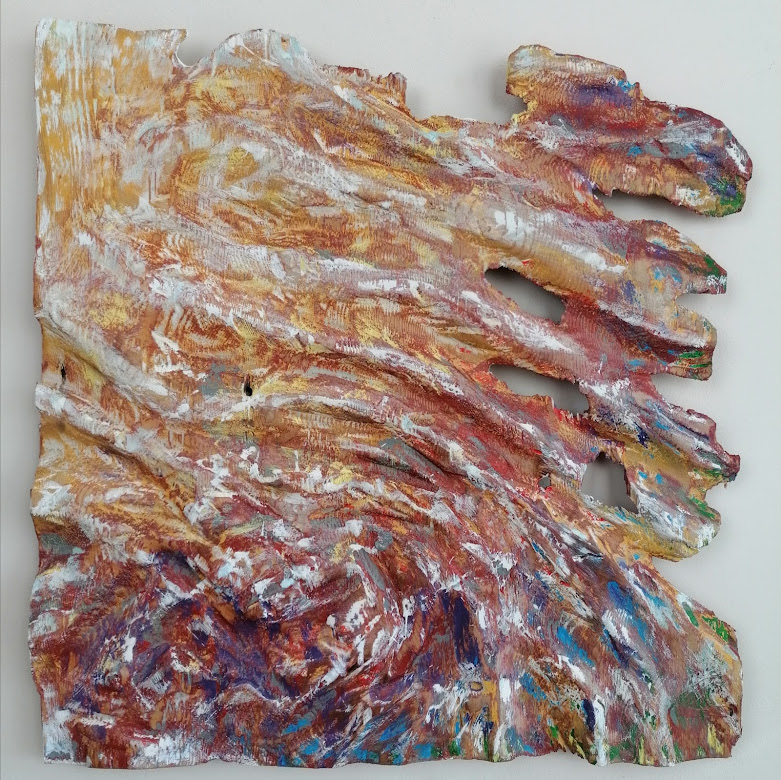 ‘Autumn Reflections’ is a painted relief carving in plywood