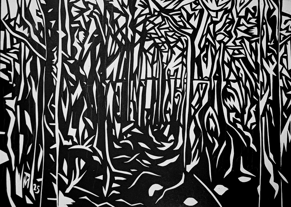 This the first of a series of woodland card-cuts. My original vision for this was challenged by the limitations of the medium. I really enjoyed the outcome.  This inspired me to make more works in this series.